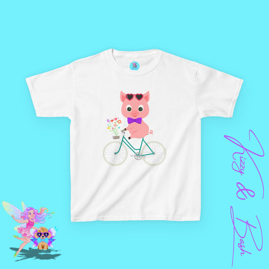 Cute Pig on Bicycle Shirt for Kids Whimsical Farmcore Graphic Tee Farm Animal Lover T-Shirt Cute Farm Animal Shirt Funny Spring Shirt for Her Adorable Pig Shirt for Kids Heavy Cotton™ Tee