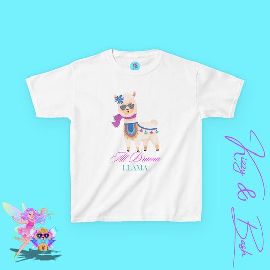 All Drama Llama T-Shirt Cute Llama Shirt for Kids Gift for Llama Lovers Cute Animal Attitude Shirt Drama Queen Shirt Funny Farm Animal T-Shirt for Kids Heavy Cotton™ Tee