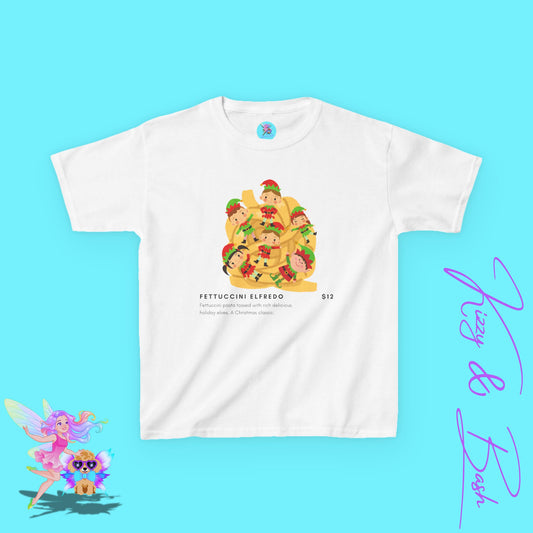 Fettuccini Elfredo Shirt Funny Holiday T-Shirt Gag Gift or Party Tee Idea Gift for Food Lovers Gift for Elf Fans Holiday Party Shirt Hilarious Christmas Shirt for Kids Heavy Cotton™ Tee