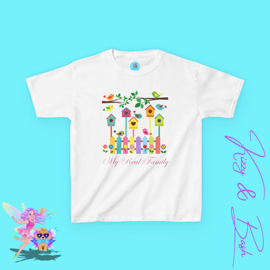 Bird Lover T-Shirt for Kids My Real Family Tee Cute Spring Bird Shirt Cottagecore Nature Graphic Tee Gift for Nature Lovers Cute Colorful Spring Gift Tee for Kids Heavy Cotton™ Tee