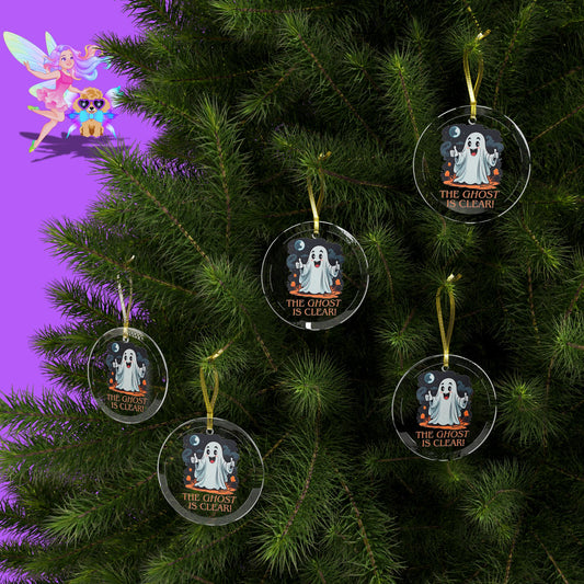 Funny Halloween Gift Cute Ghost Ornament Perfect Christmas Gift for Halloween Lovers Funny Paranormal Investigator Gift The Ghost is Clear The Coast is Clear Punny Glass Ornaments