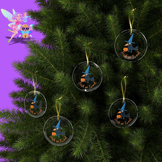 Funny Halloween Gift Unique Gift for Bird Lovers Black Bird Christmas Ornament Trick-or-Treating Trick or Tweet Pun Raven with Halloween Pumpkin Glass Ornaments