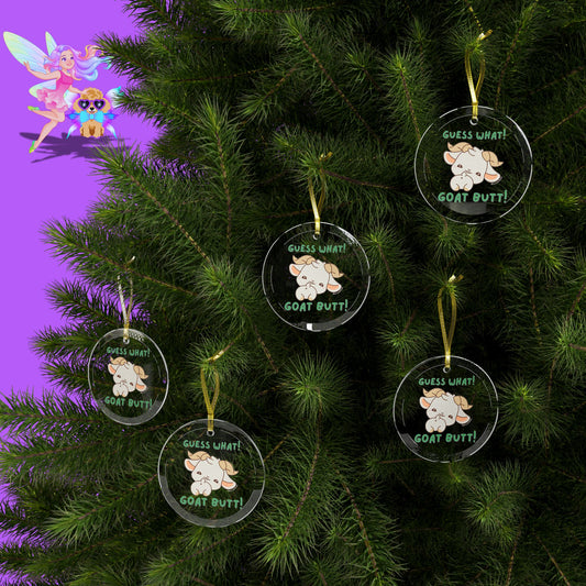 Hilarious Goat Ornament Funny Christmas Ornament Perfect Gift for Goat Lovers Unique Farm Animal Ornament Punny Animal Gift Ultimate Christmas Gift for Farmers Guess What Chicken Butt Joke Pun Guess What Goat Butt Glass Ornaments