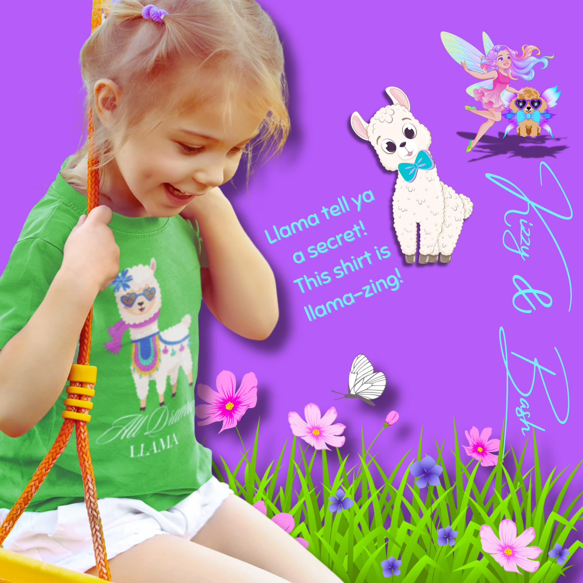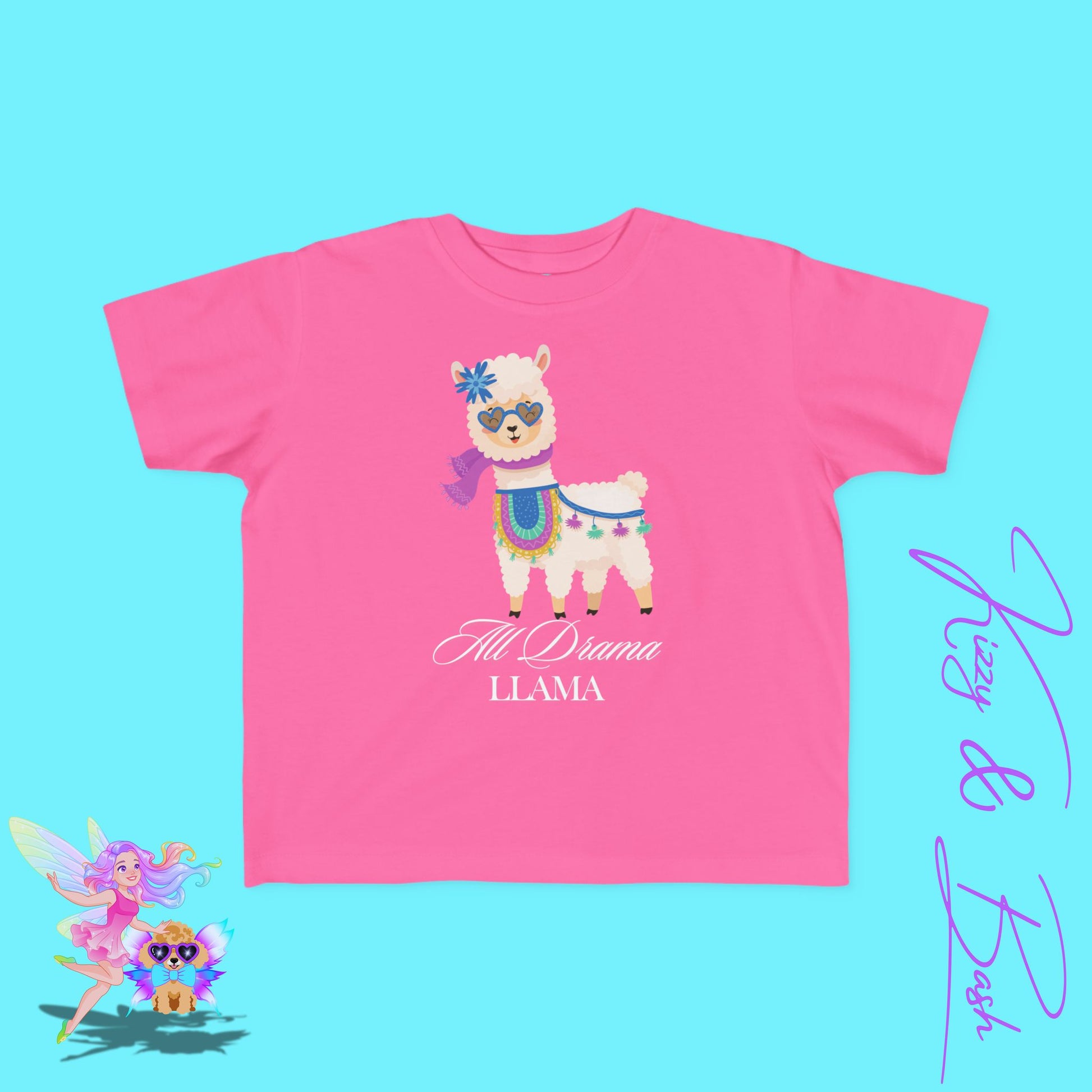 All Drama Llama T-Shirt for Toddlers Funny Animal Shirt for Her Fun Gift for Llama Lovers Kawaii Llama Shirt Funny Farm Animal Tee Cute and Sassy Animal Graphic Tee for Toddler's Fine Jersey Tee