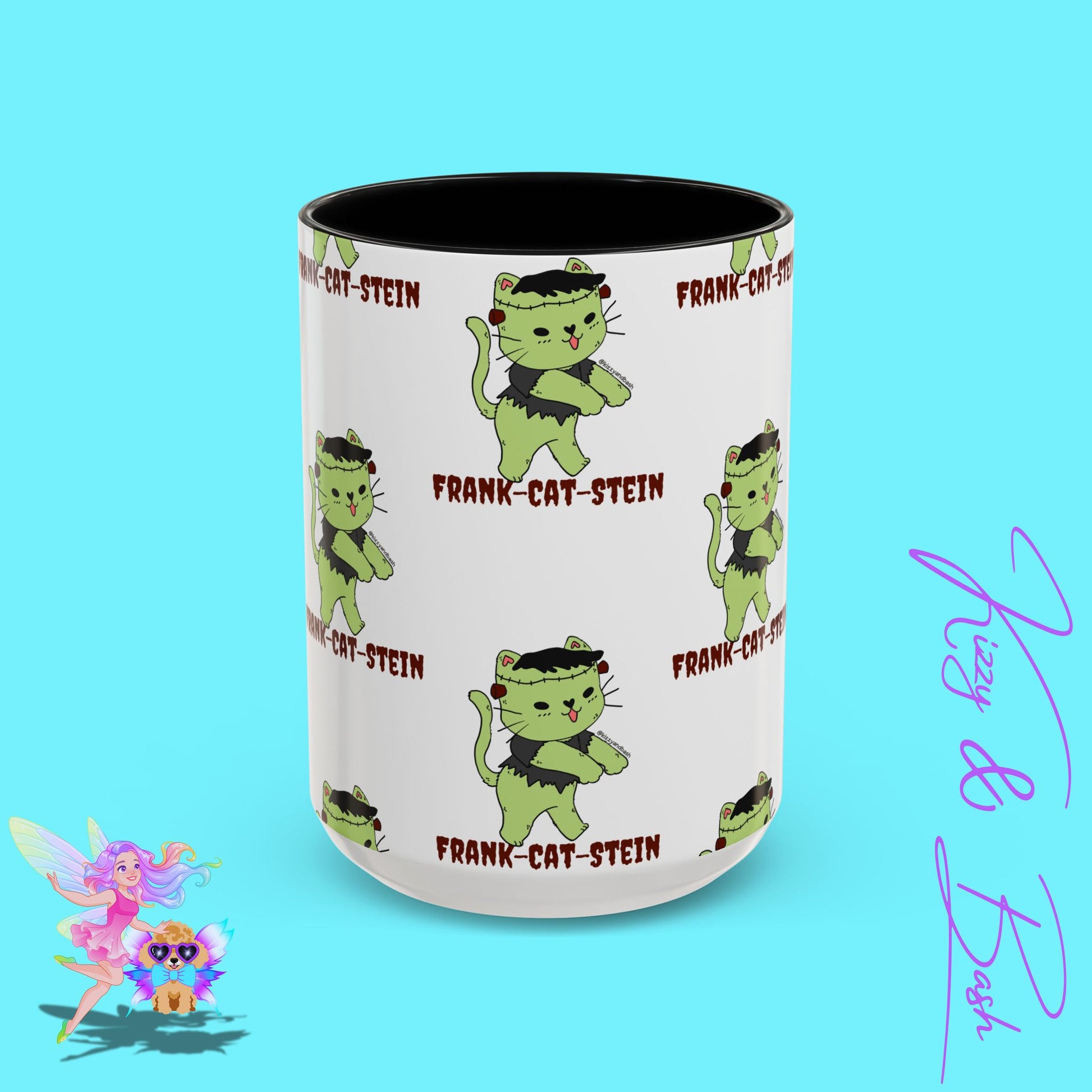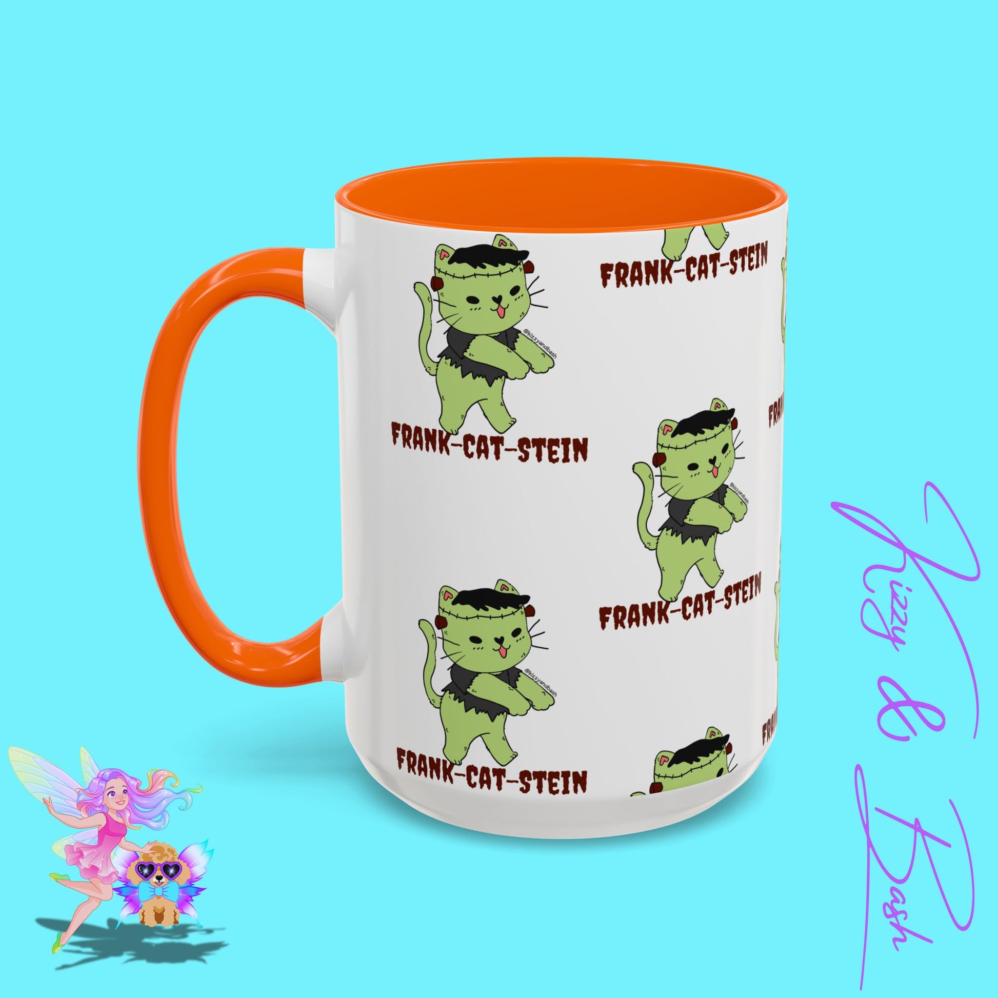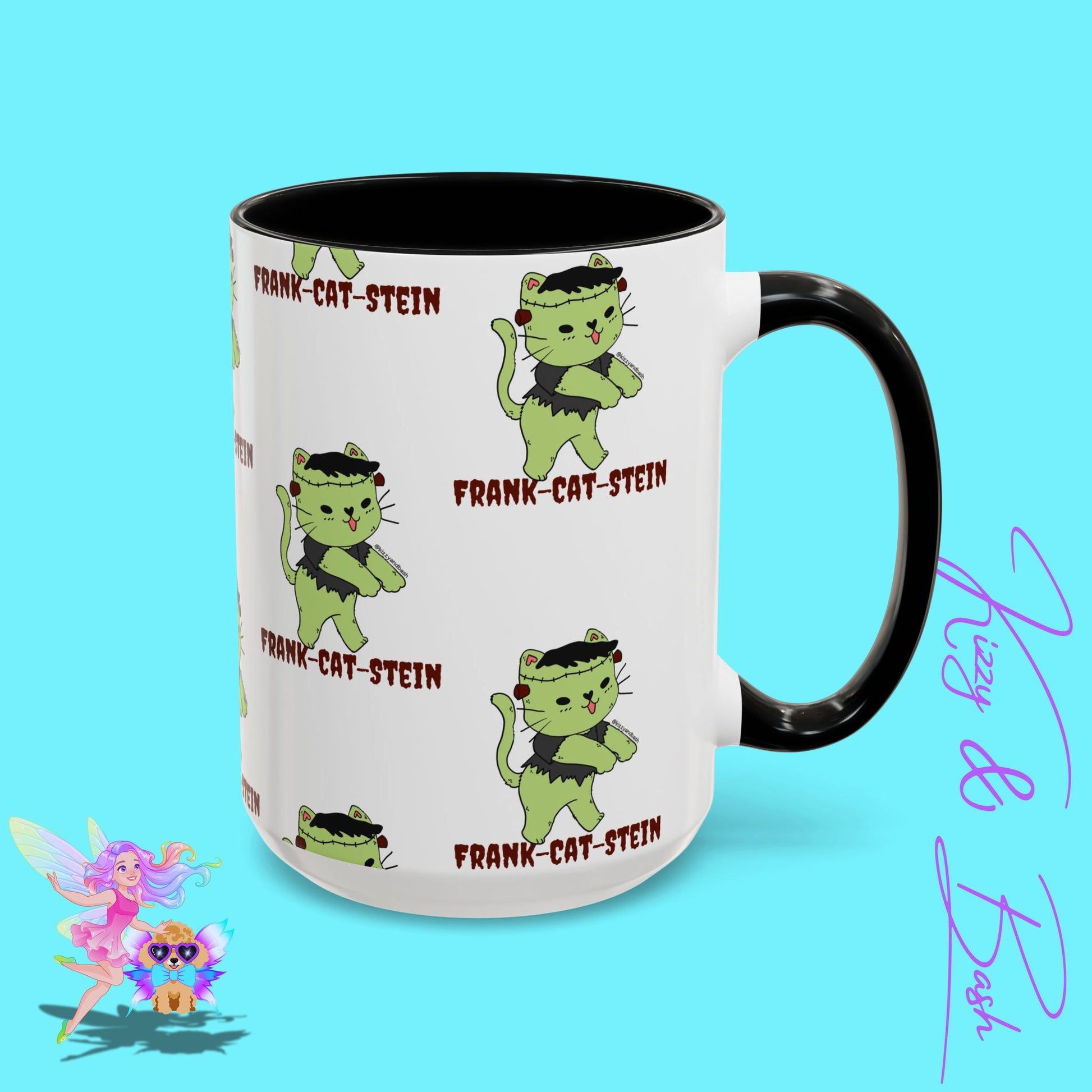 Funny Cat Mug Cute Halloween Coffee Mug Frankenstein Kitty Cat Coffee Mug Unique Gift for Cat Lovers Funny Gift for Teacher Appreciation Frank-Cat-Stein Accent Coffee Mug - 11, 15oz