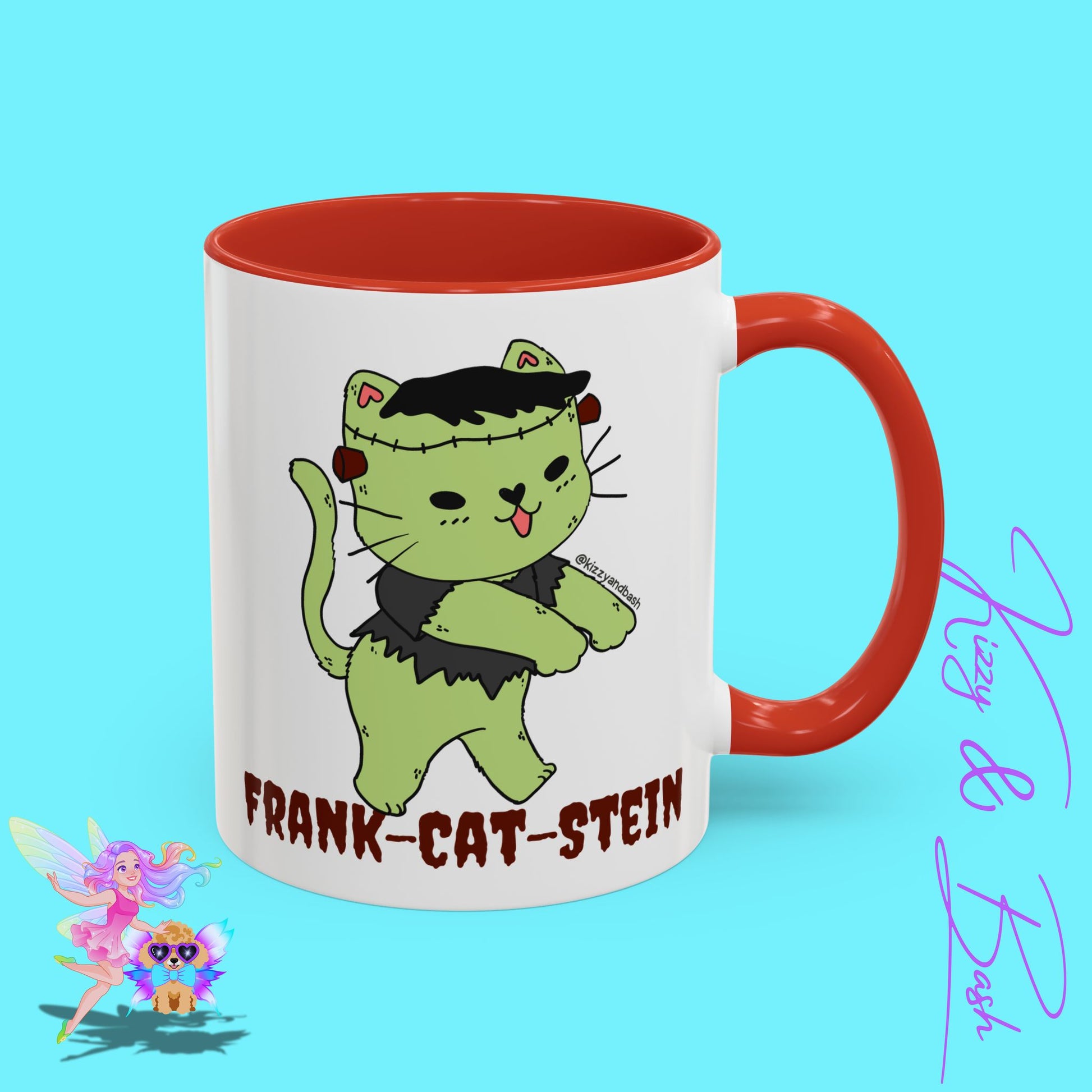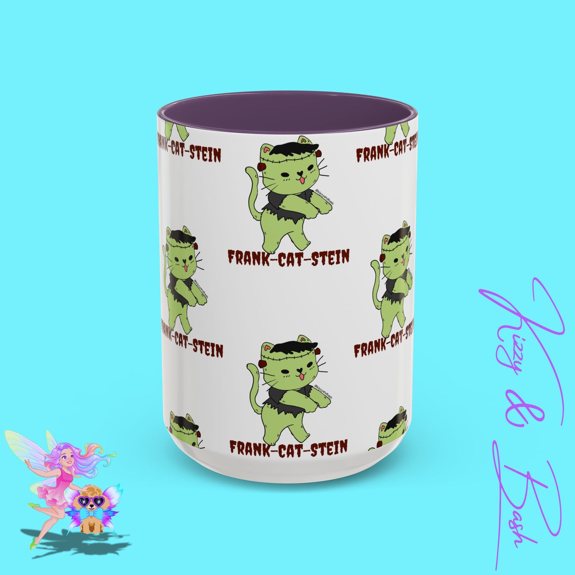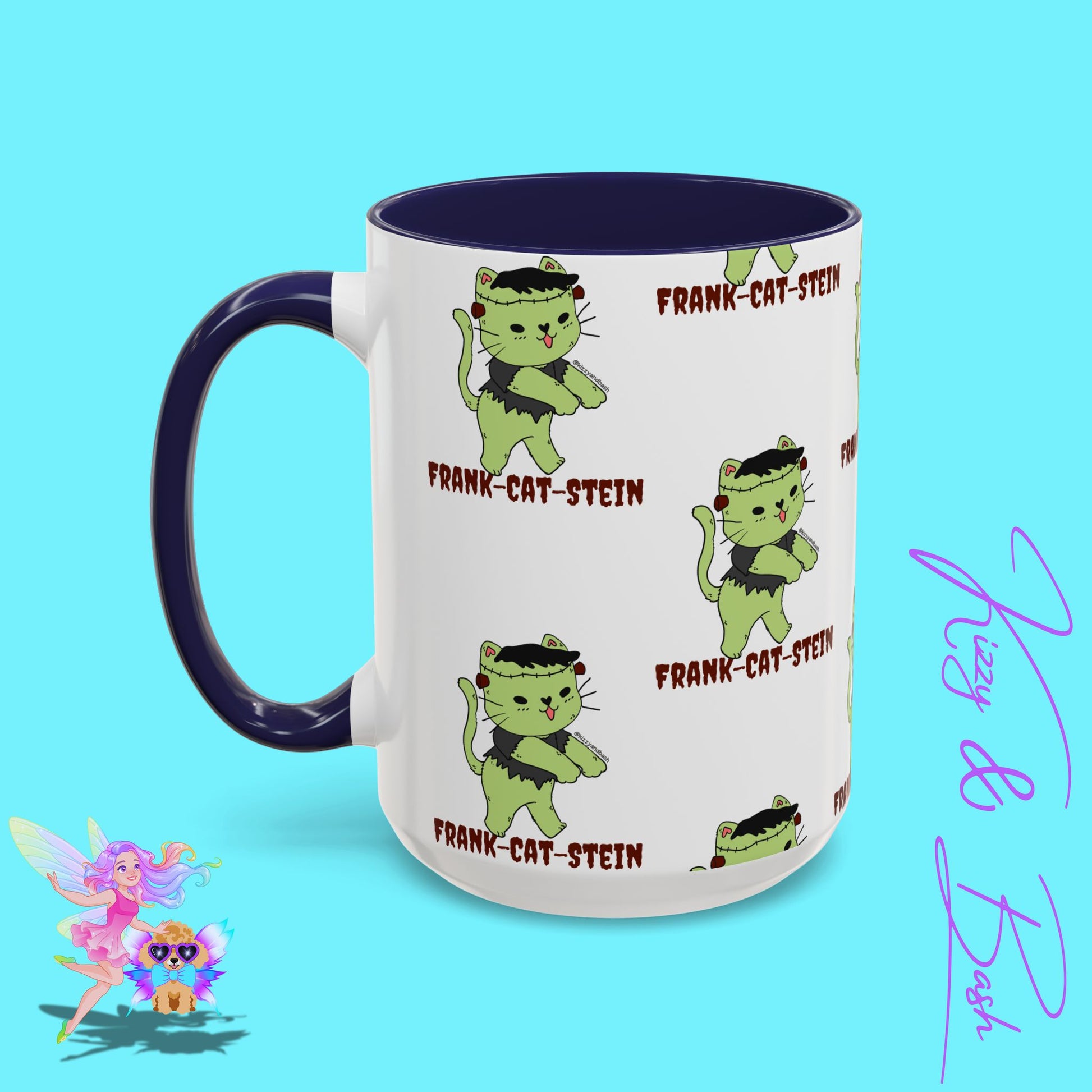 Funny Cat Mug Cute Halloween Coffee Mug Frankenstein Kitty Cat Coffee Mug Unique Gift for Cat Lovers Funny Gift for Teacher Appreciation Frank-Cat-Stein Accent Coffee Mug - 11, 15oz
