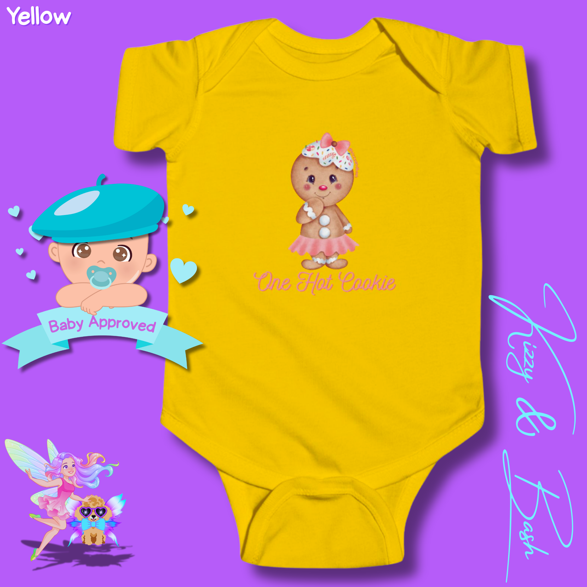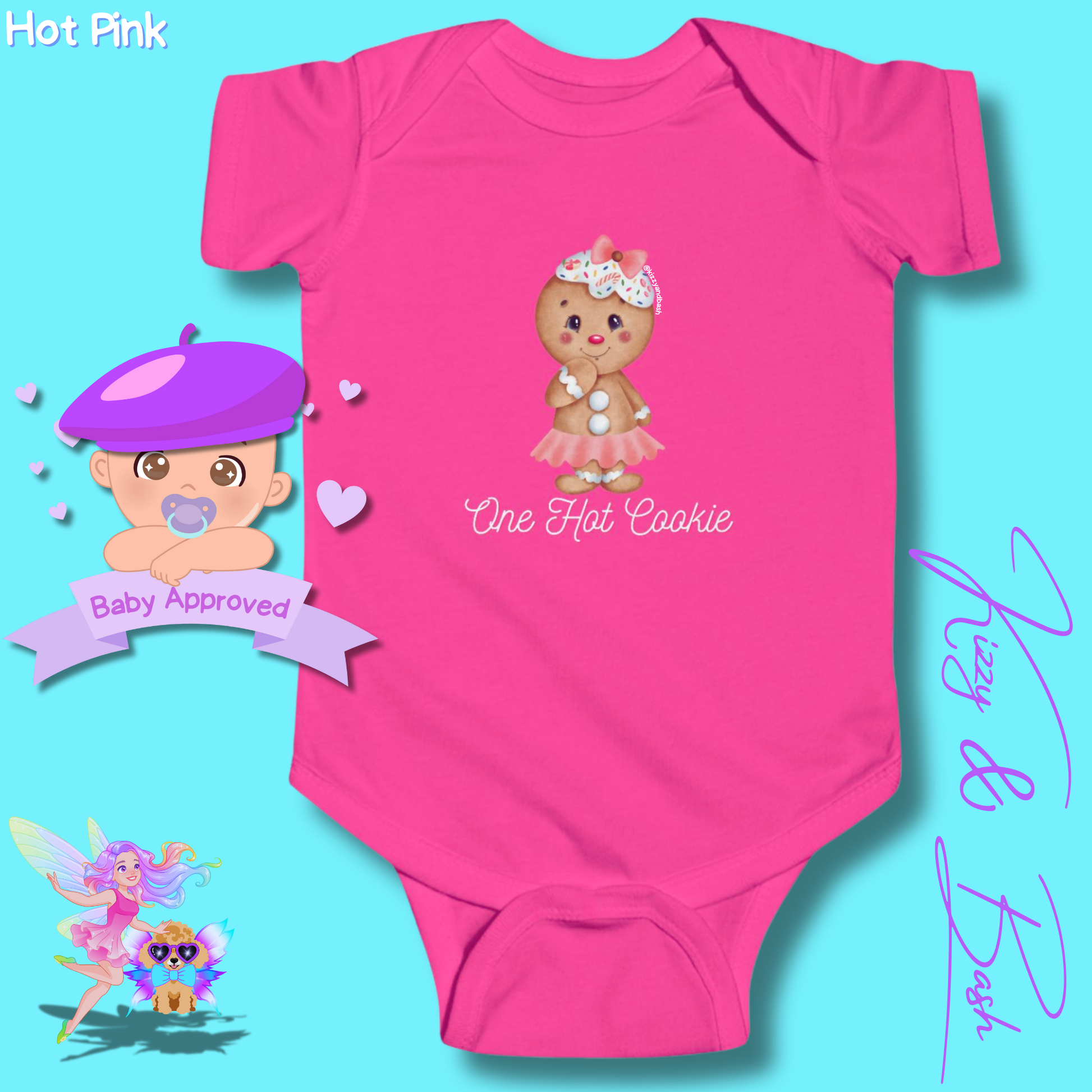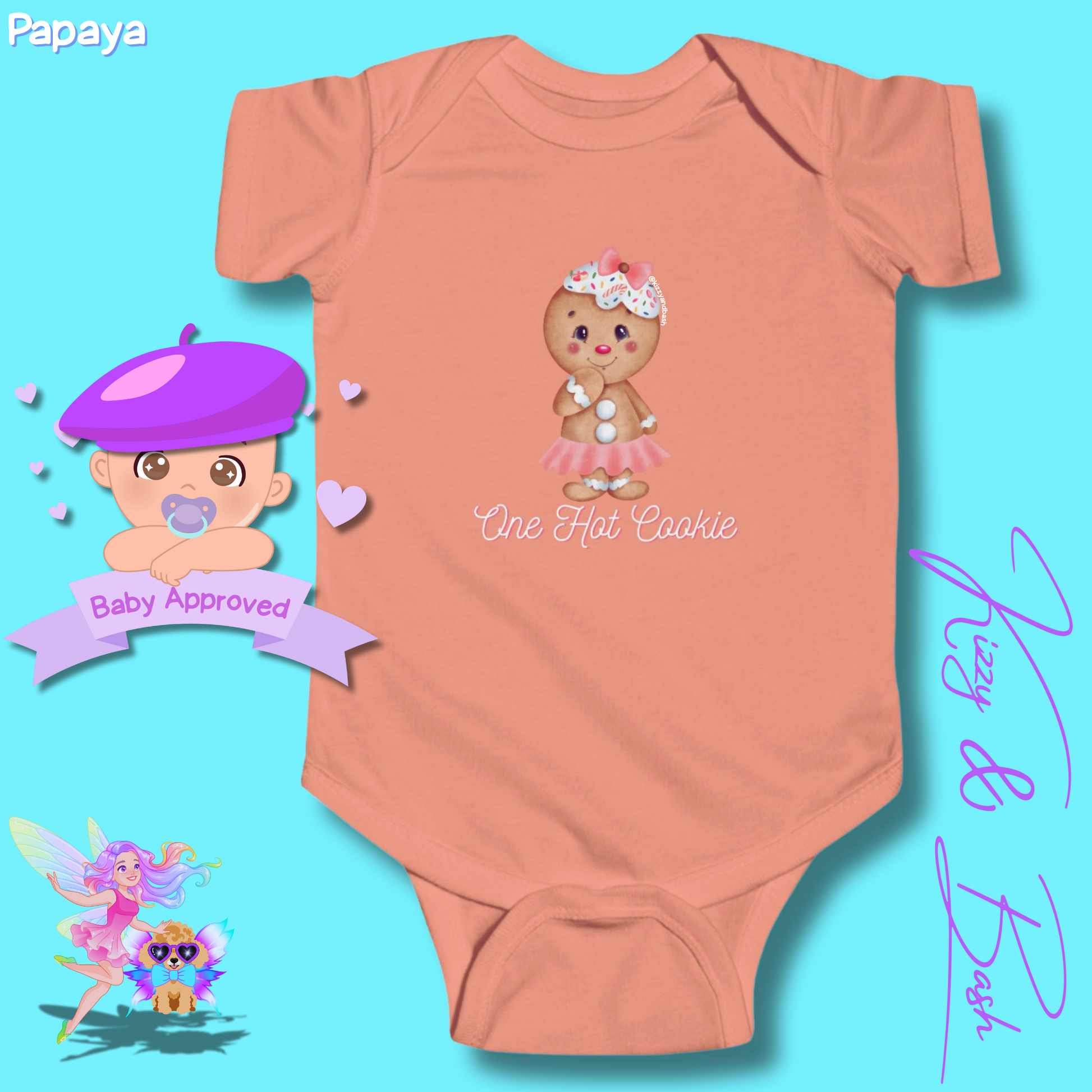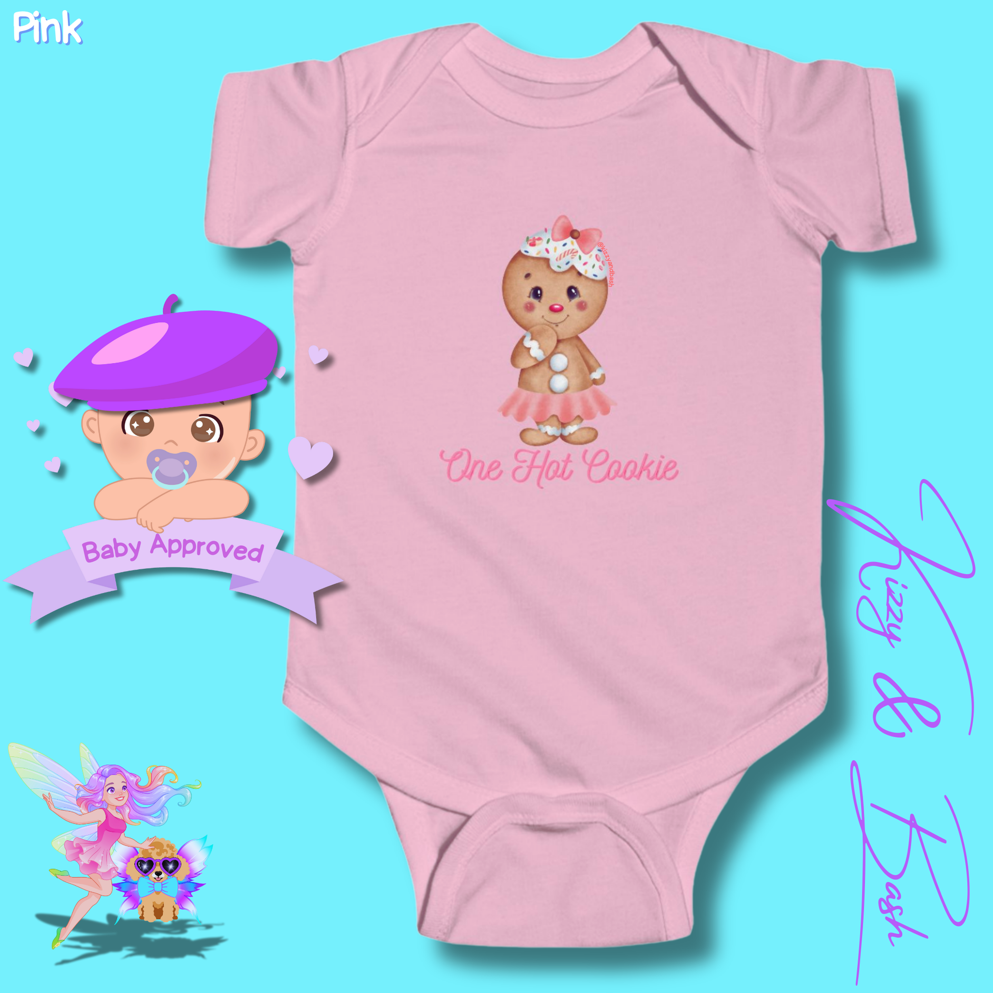 Cute Gingerbread Onesie for Baby Girl One Hot Cookie Perfect Gift for Christmas Baby Fun Christmas Baby Shower Gift Idea Christmas Cookie Infant Fine Jersey Bodysuit