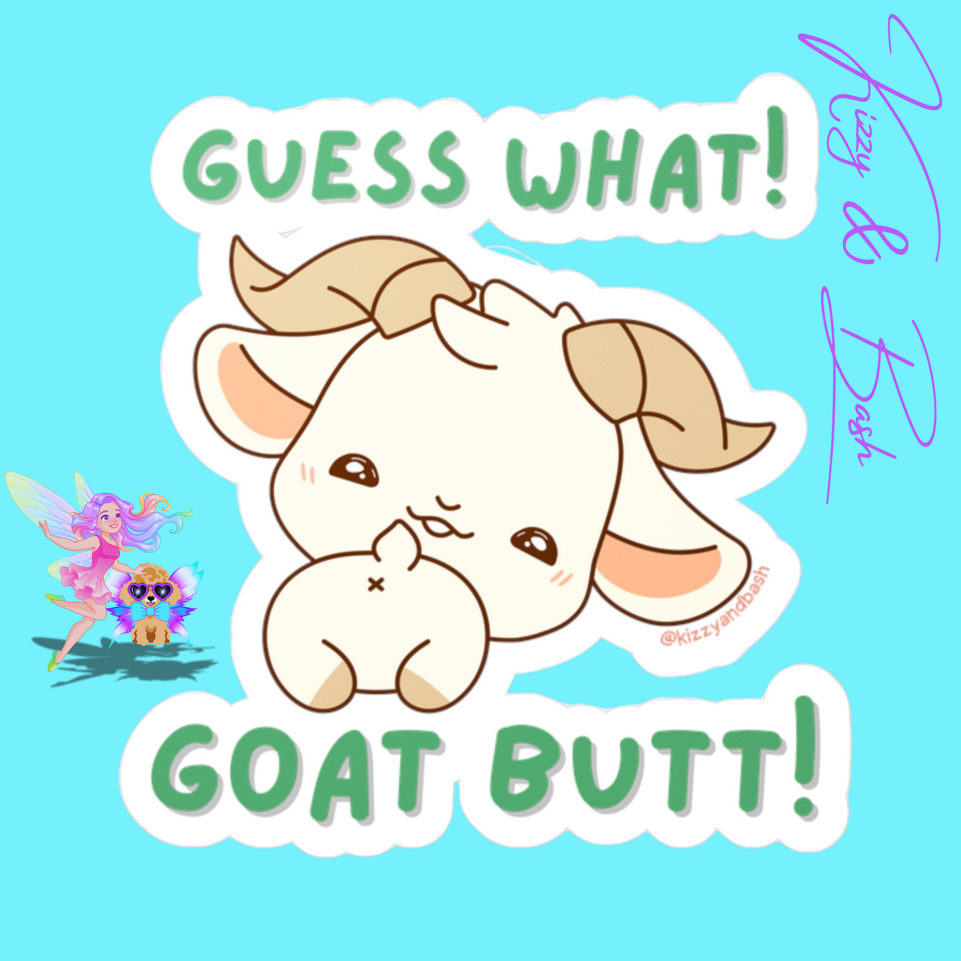 Waterproof Goat Decal Sticker Unique Goat Decal Funny Goat Decal Perfect Gift for Goat Lovers Funny Gift for Farmers Hilarious Decal for Kids Guess What Goat Butt Joke Pun Kiss-Cut Vinyl Decals