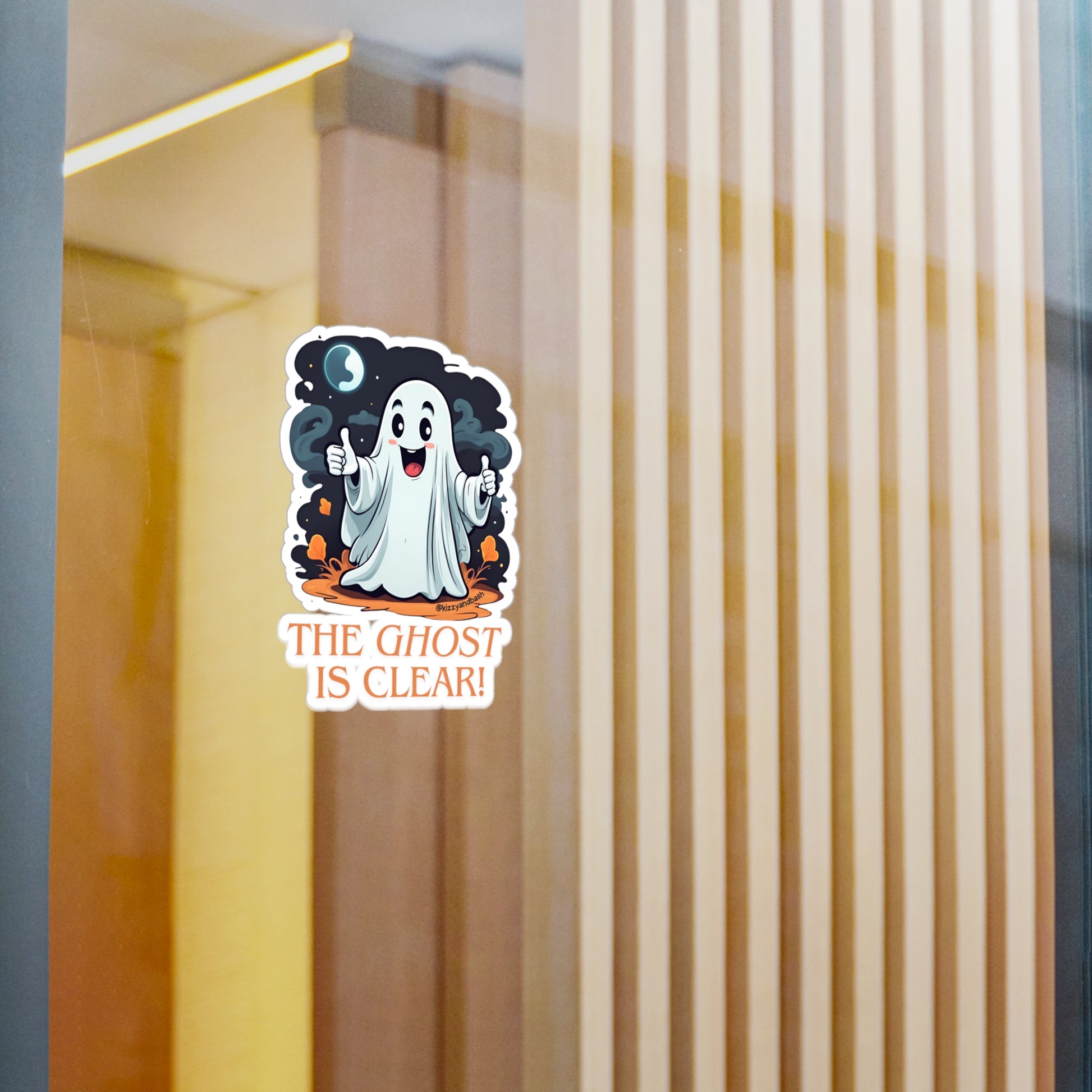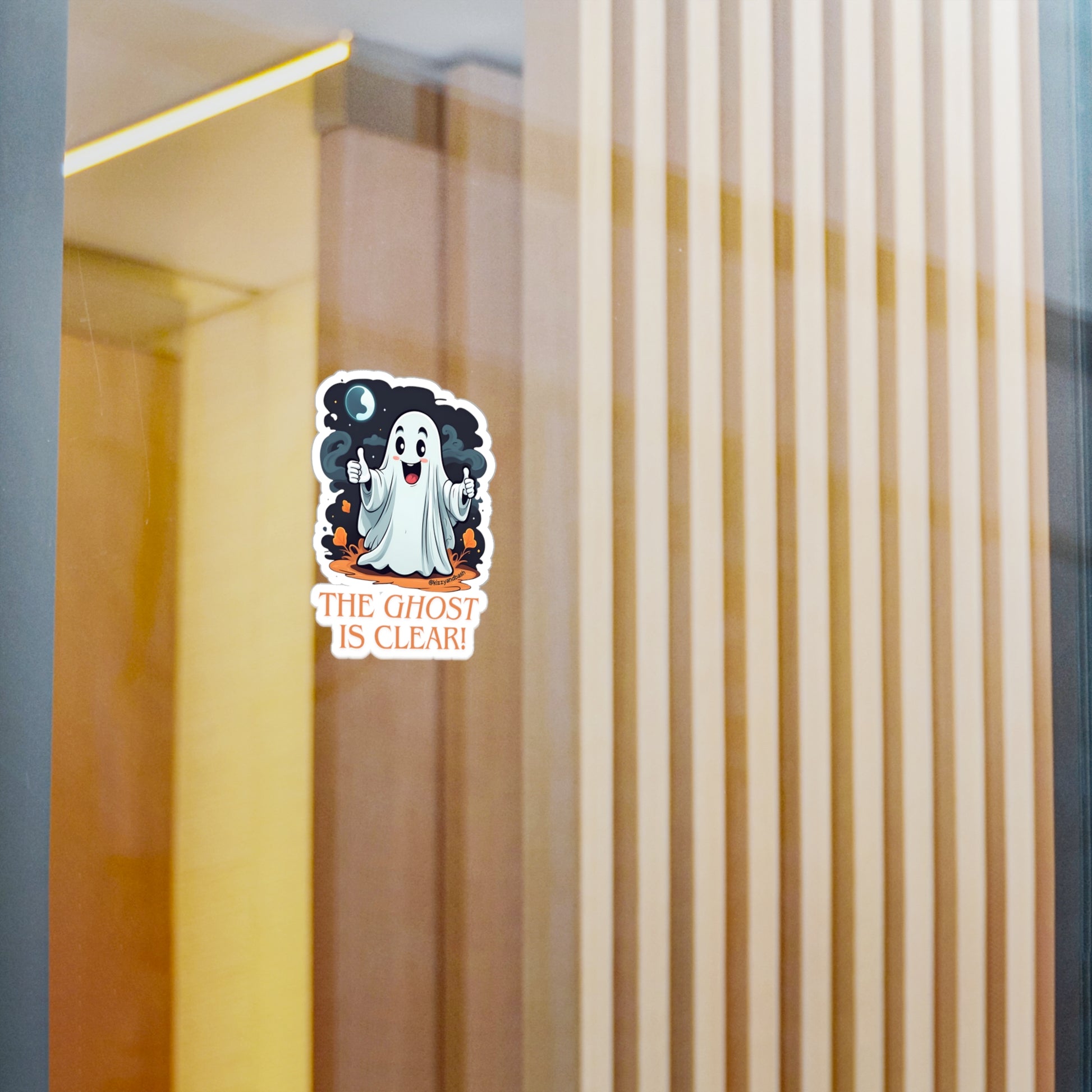 Waterproof Halloween Decal Waterproof Ghost Decal Perfect Gift for Ghost Lovers Unique Halloween Gift Waterproof Paranormal Decal The Ghost is Clear The Coast is Clear Pun Ghost with Two Thumbs Up Kiss-Cut Vinyl Decals