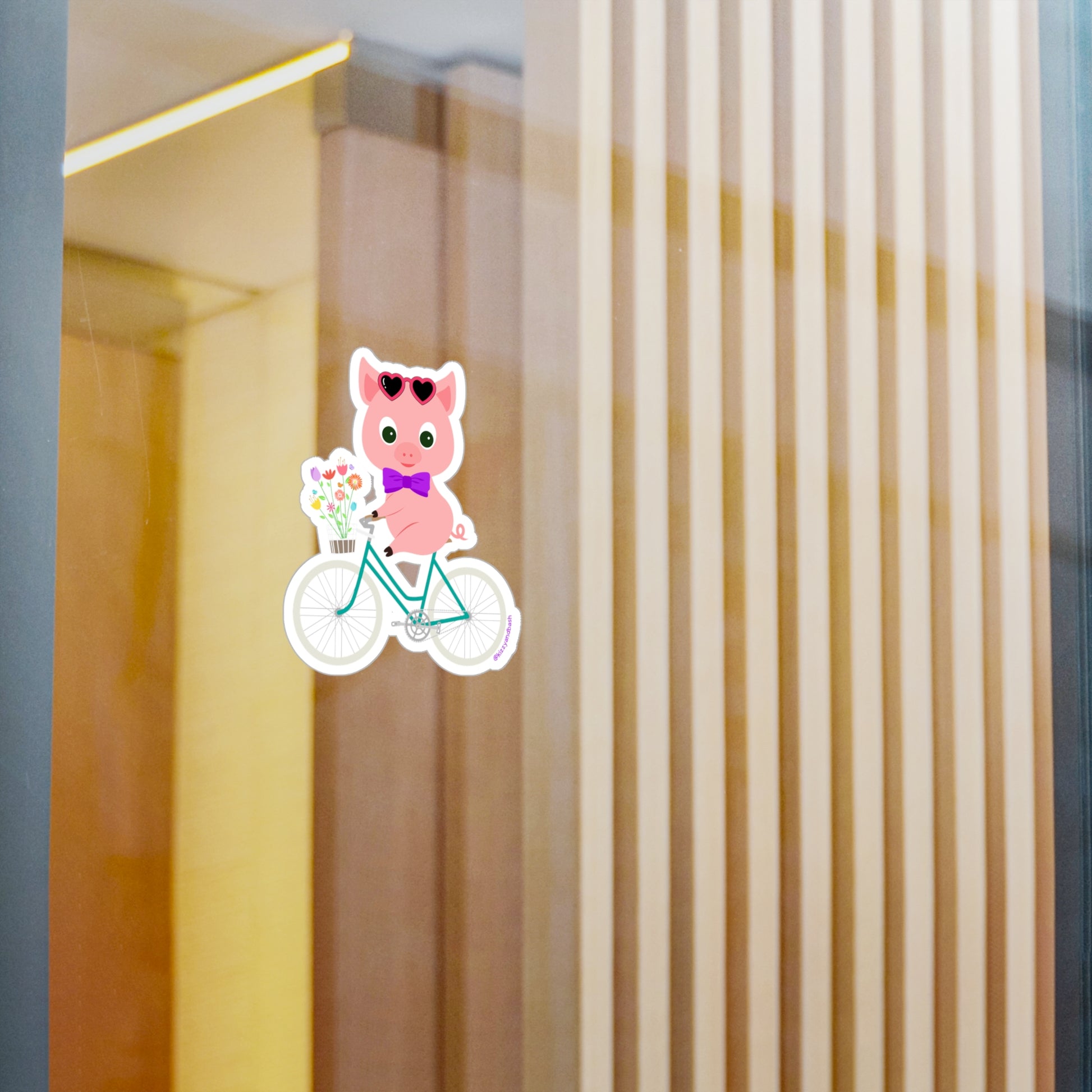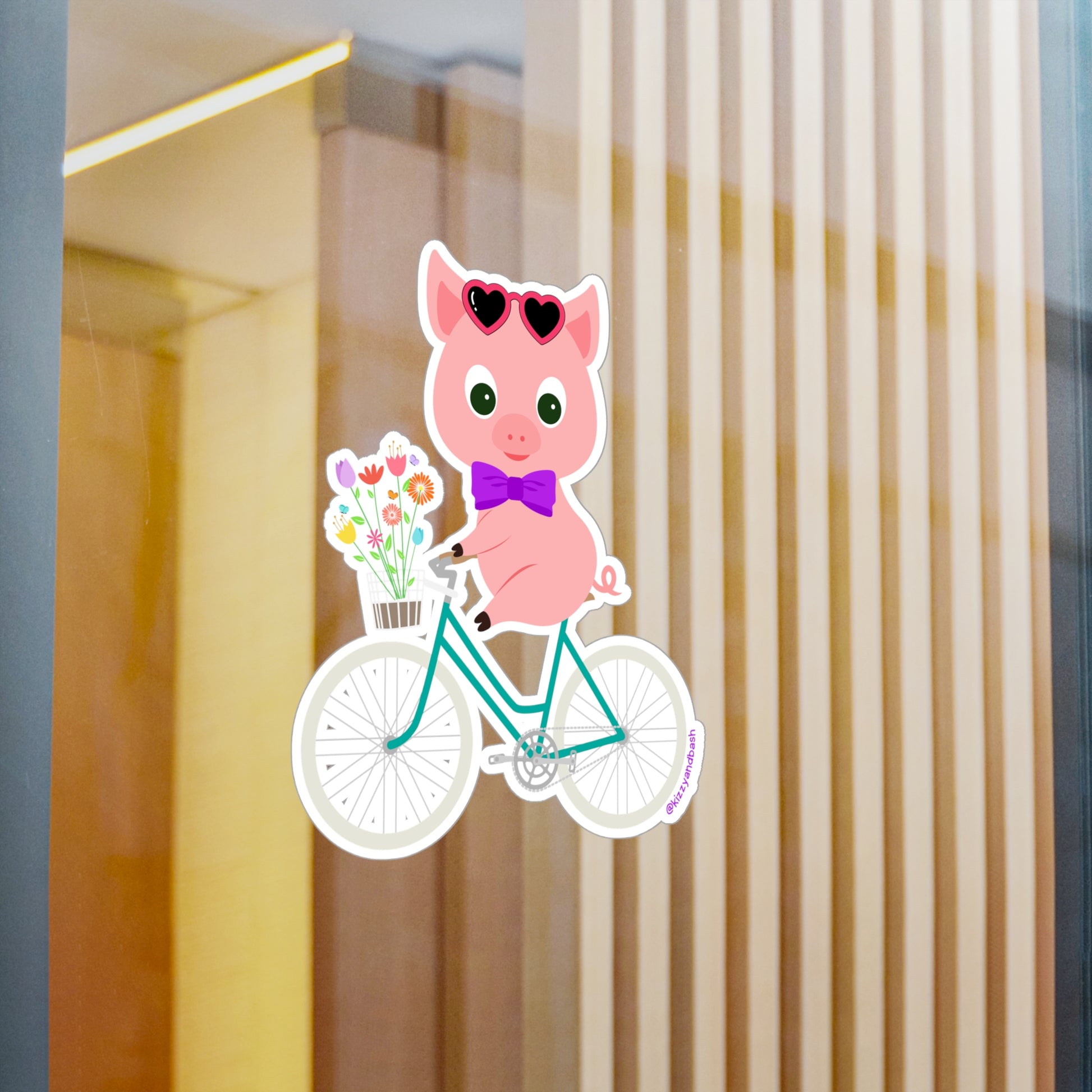 Spring is in the air with this Kizzy & Bash one-of-a-kind happy biking piggy kiss-cut vinyl decal design!