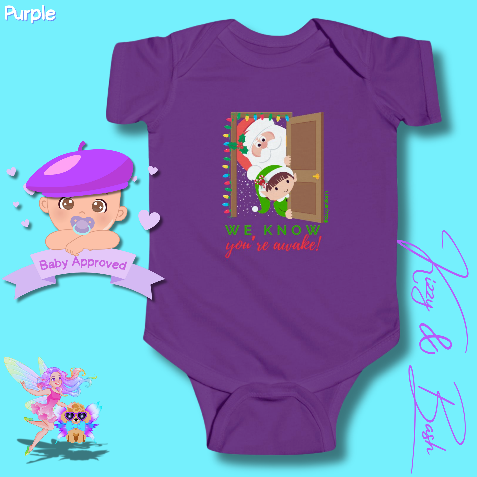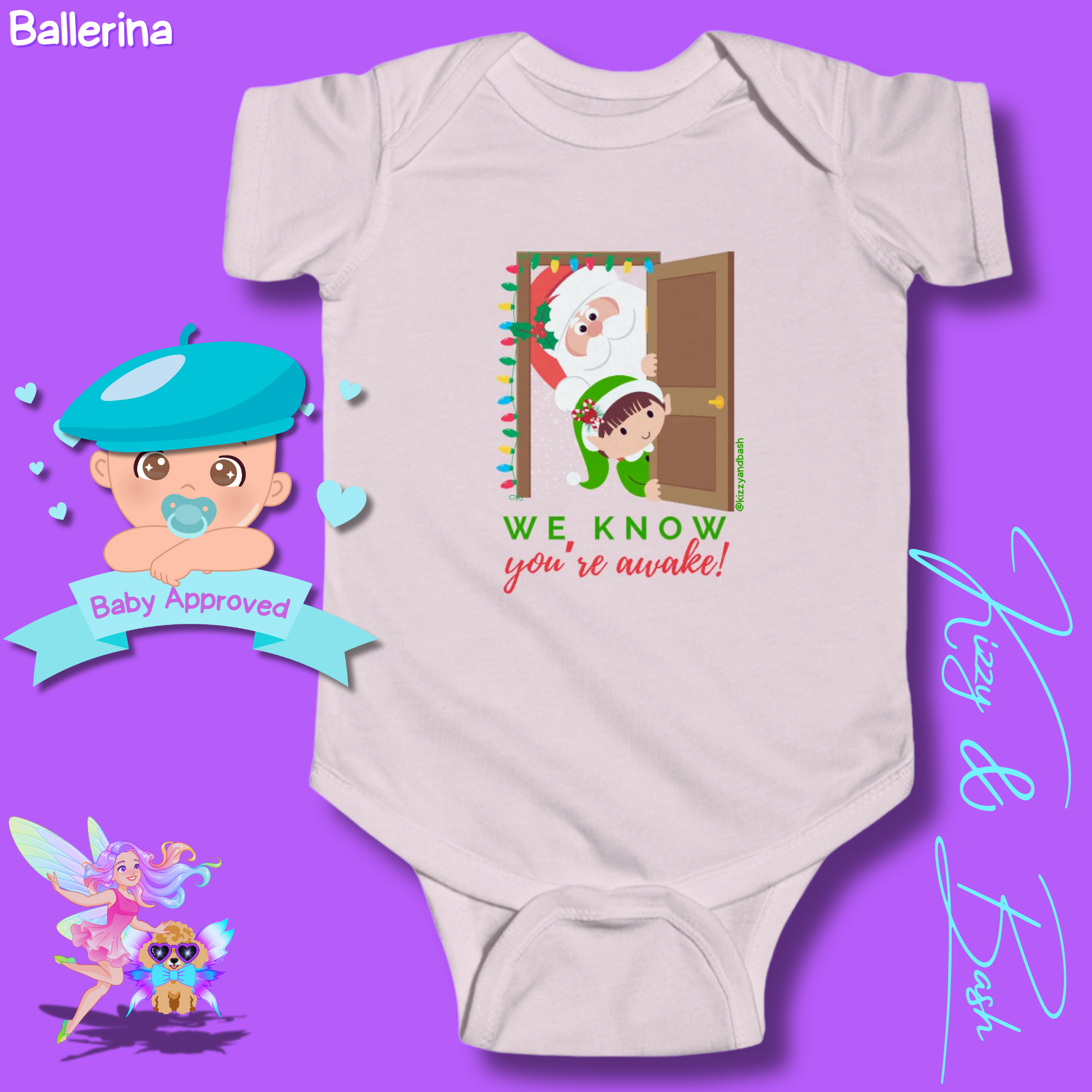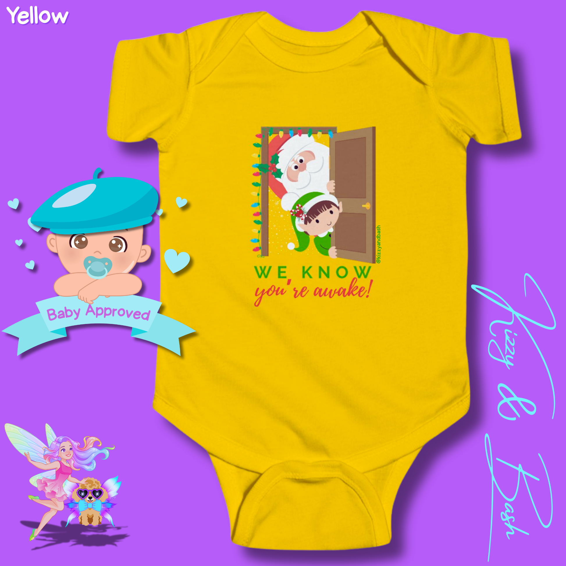 Santa and Elf Christmas Onesie Funny Christmas Gift for Baby Perfect Gift for Newborn Unique Baby Shower Gift Christmas Baby Nursery Decor We Know You're Awake Infant Fine Jersey Bodysuit