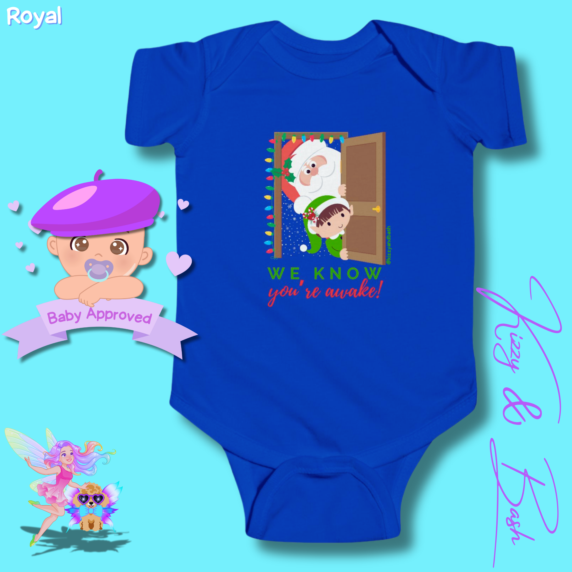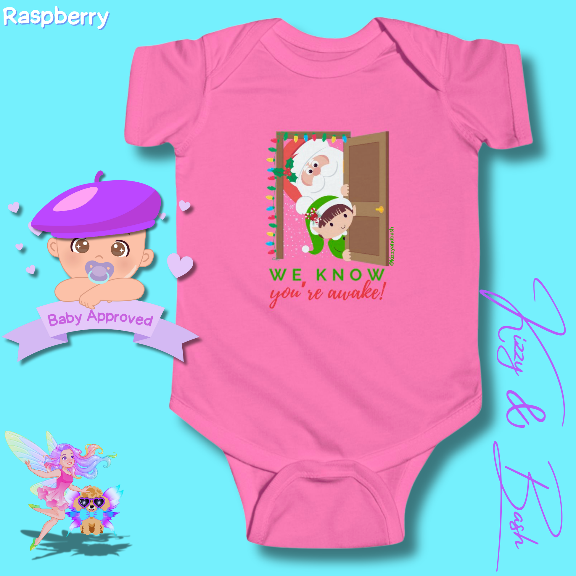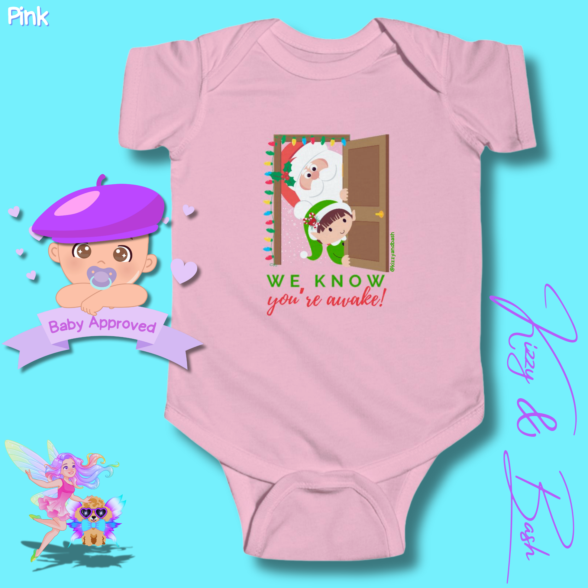 Santa and Elf Christmas Onesie Funny Christmas Gift for Baby Perfect Gift for Newborn Unique Baby Shower Gift Christmas Baby Nursery Decor We Know You're Awake Infant Fine Jersey Bodysuit