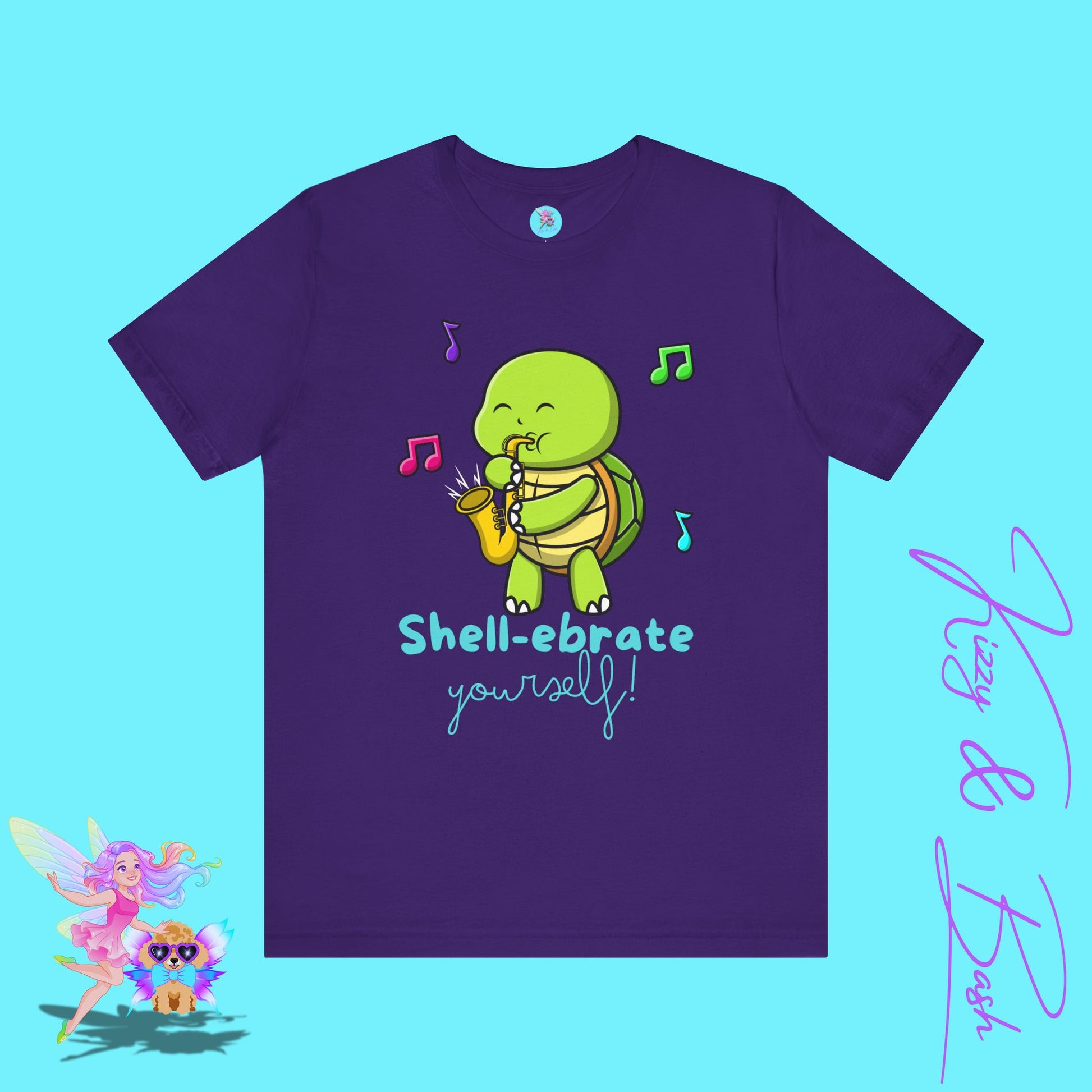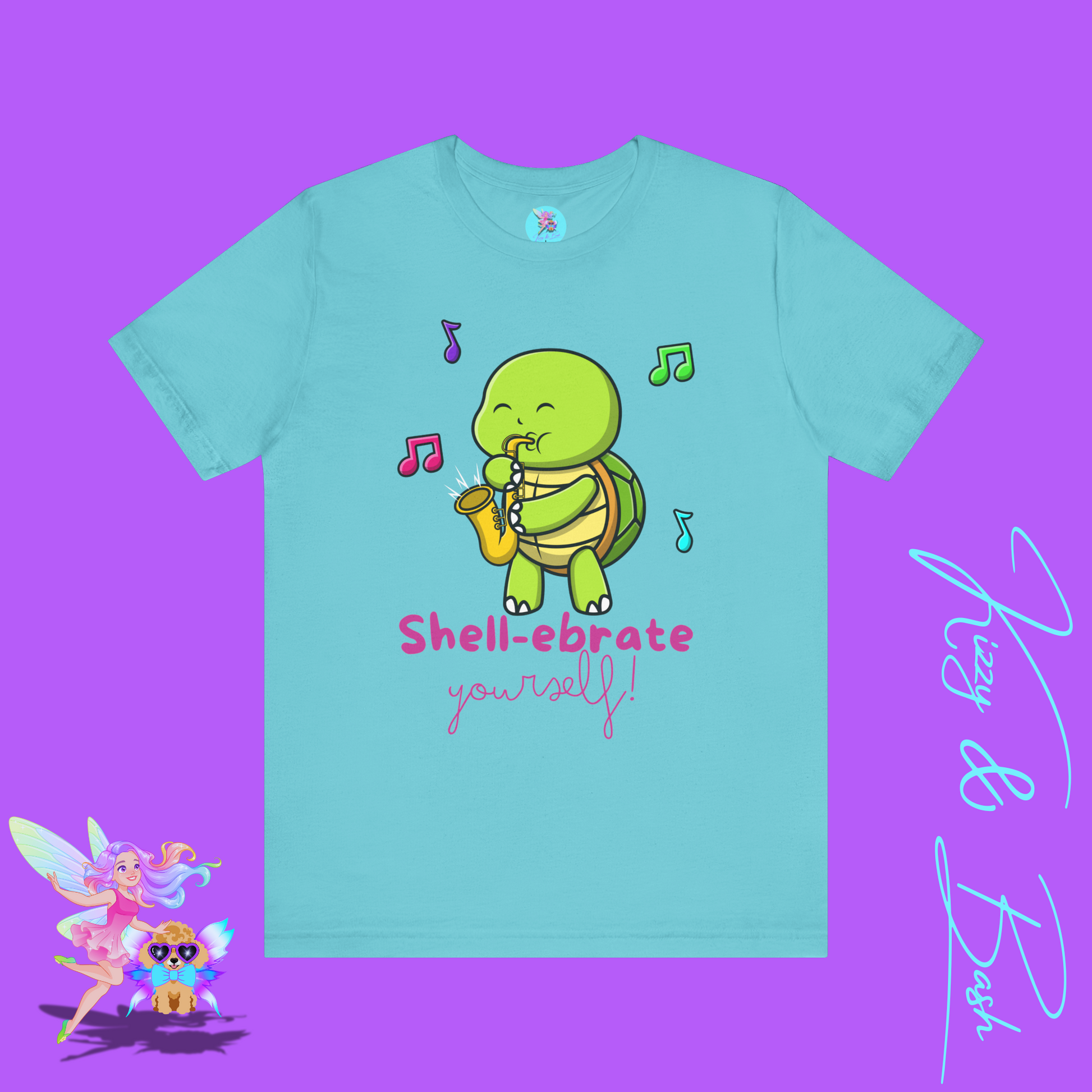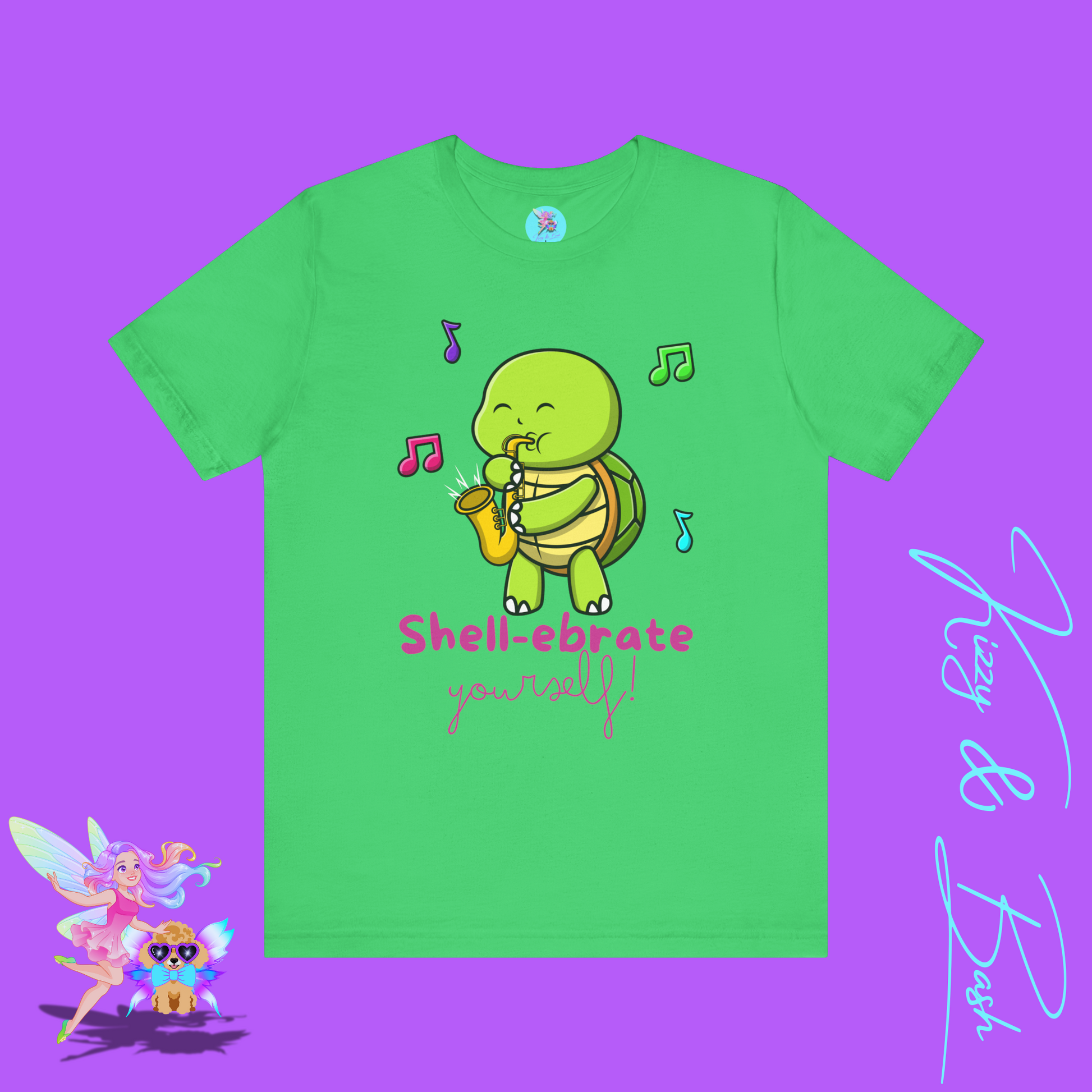This jazzy turtle — who sees you and celebrates you — is brought to you by digital artist and children's book author and illustrator, Kizzy MacKenzie (@bizzybizzykizzy), for the dopamine-inducing-intoxicatingly-enchanting brand, Kizzy & Bash (@kizzyandbash). Kizzy co-founded Kizzy & Bash with her toy poodle sidekick (and muse), Bash, in 2025. (That's him in our logo)!