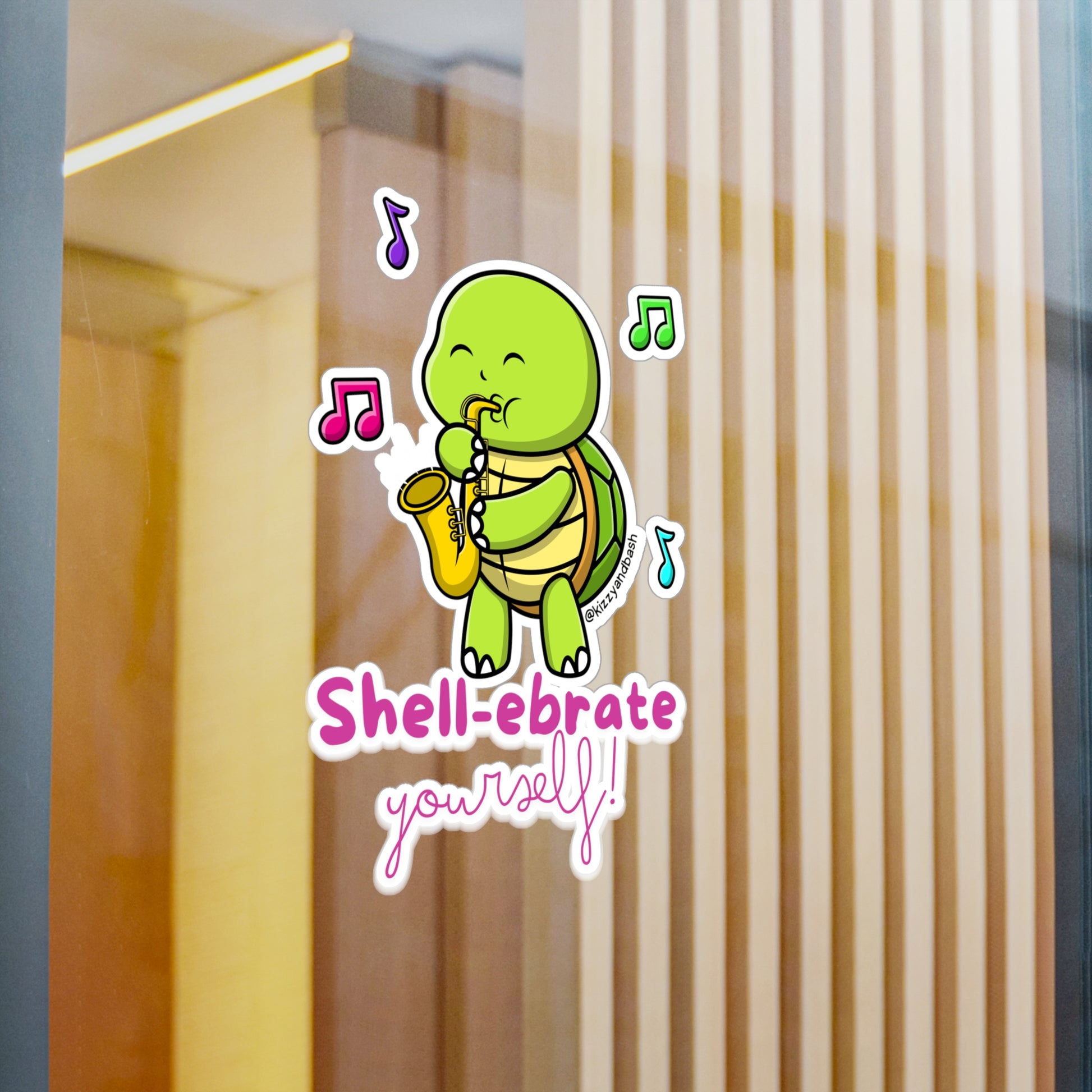 Waterproof Turtle Decal Saxophone Playing Turtle Lover Gift Idea Funny Music Teacher Decal Cute Band Camp Decal Guidance Counselor Appreciation Gift Shell-ebrate Yourself Pun Kiss-Cut Vinyl Decals